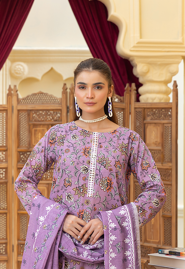 PEK12571-PG725 Stitched 3 PCS Printed Embroidered Khaddar