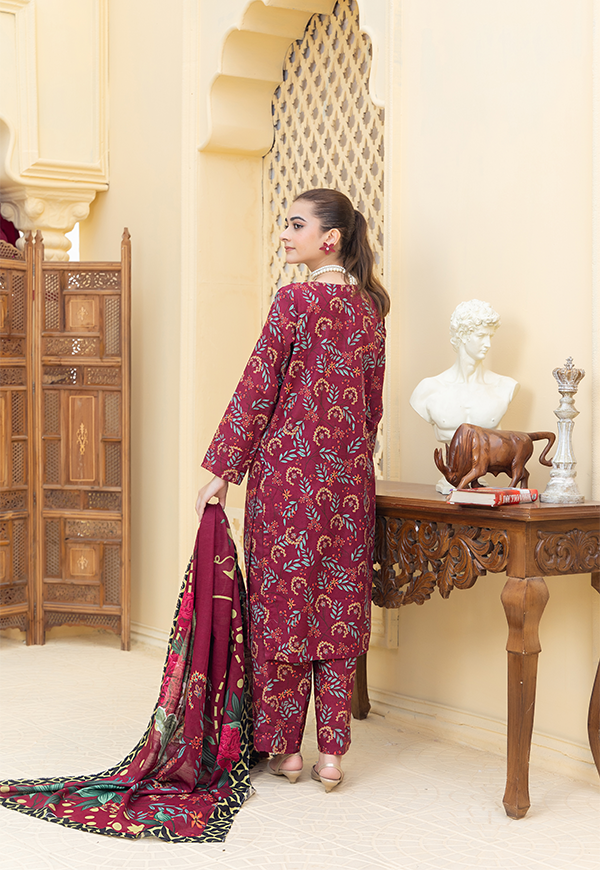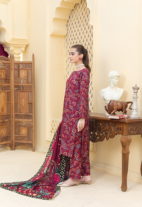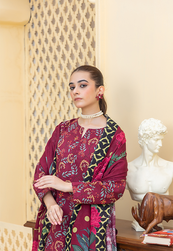 Redefine Winter Grace With This Stitched Printed Khaddar 3-Piece From Prima Gul. Crafted In Warm, Cozy Khaddar, This Set Features a Printed Shirt Paired With a Matching Trouser And a Coordinating Dupatta. Its Elegant Prints Blend Comfort With Timeless Style, Making It a Perfect Choice For Effortless Everyday Wear In The Cooler Season.