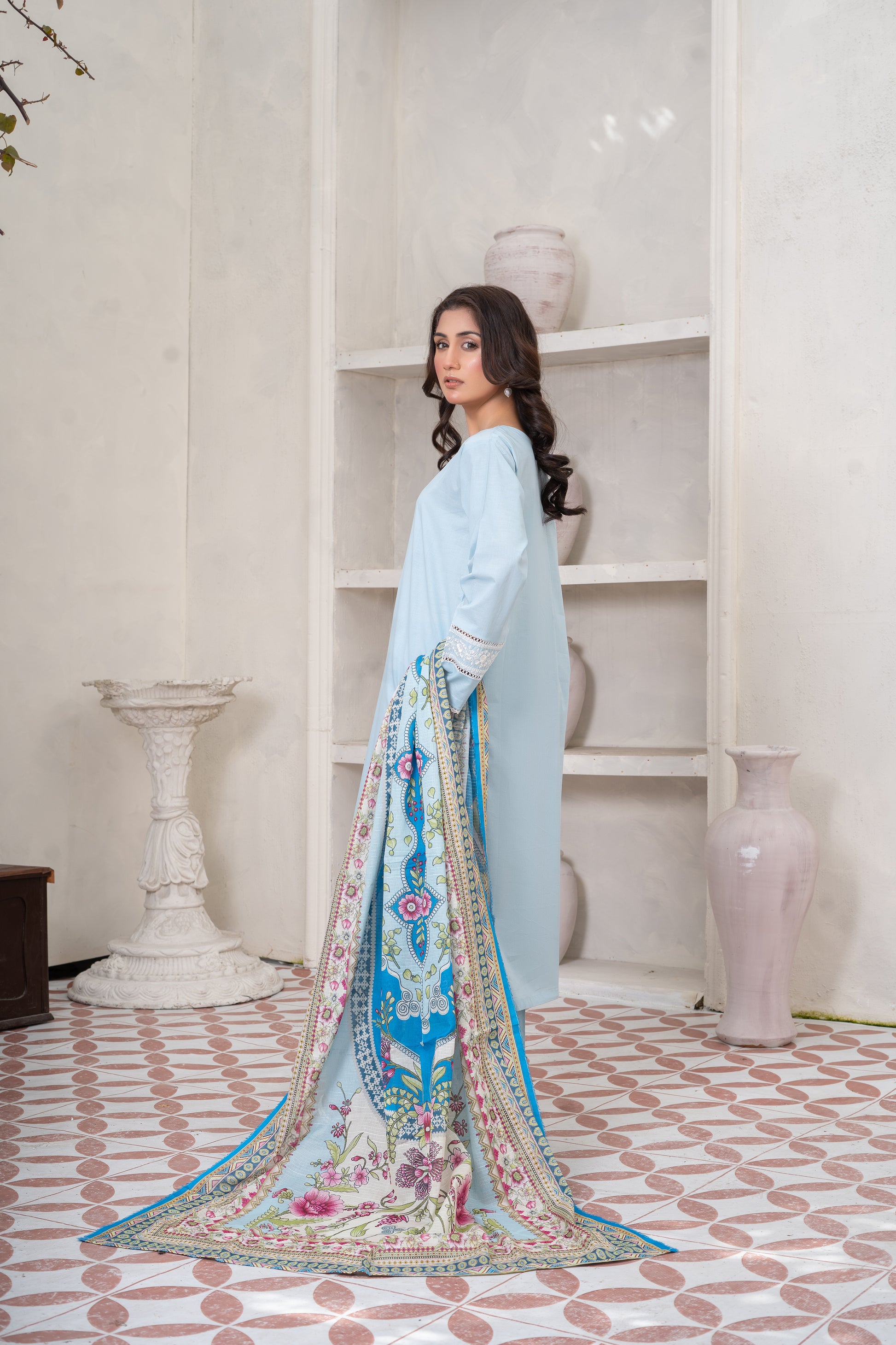 ES732PG1125 Stitched 3 Pcs Solid Embroidered Cambric