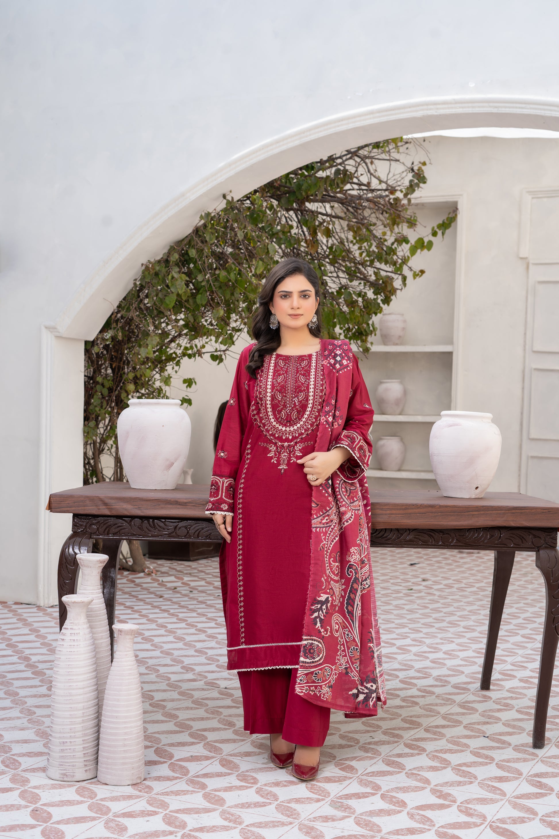 EMB735PG1225 Stitched 3 Pcs Embroidered Cambric